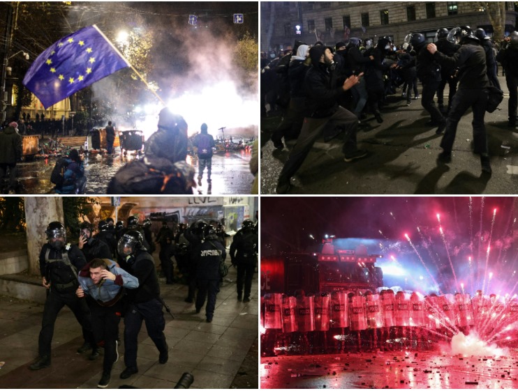FOTO, VIDEO. “Gruzīni pieder Eiropai, un tāpēc mēs esam šeit, ielās.” Gruzijā turpinās protesti pret ES iestāšanās sarunu apturēšanu 96