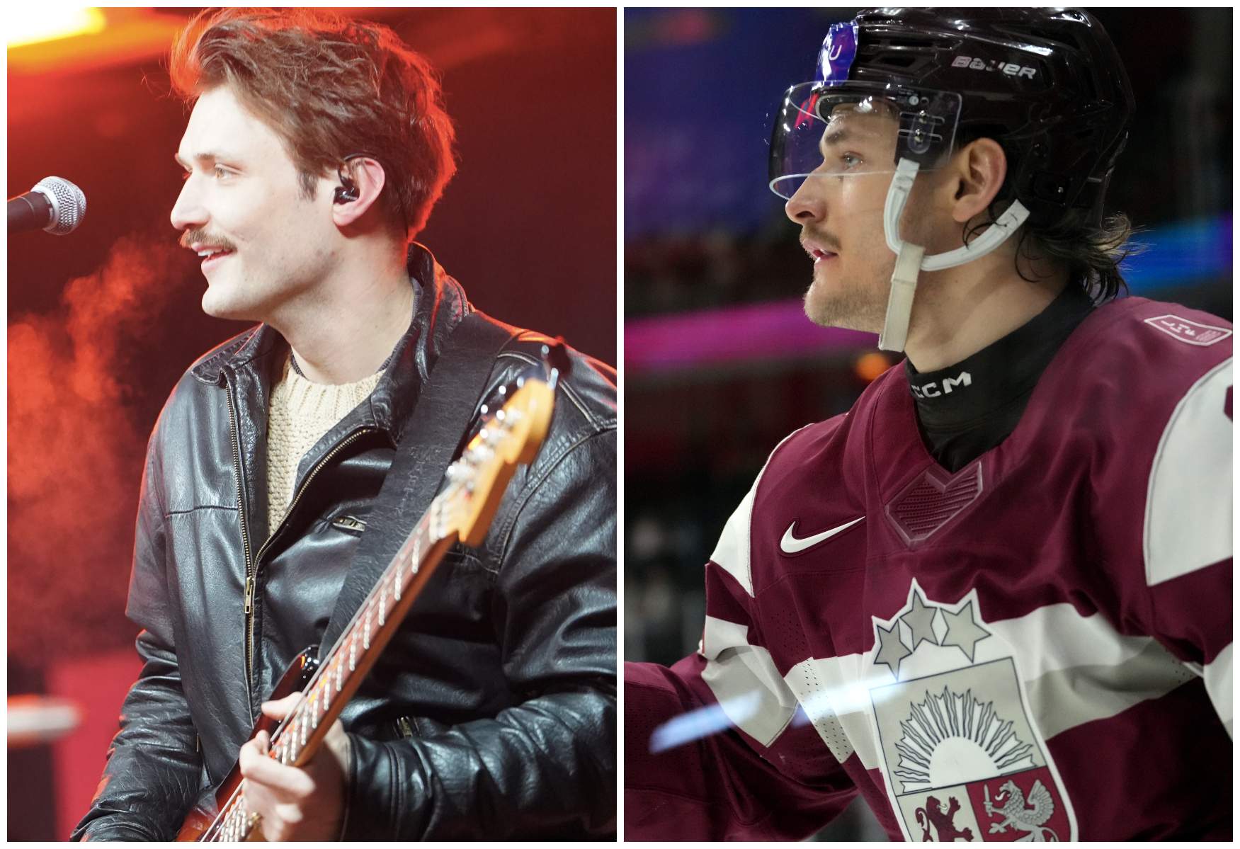 FOTO. Hokejists uzspēlē arī vienā no Latvijas populārākajām grupām? Fani atklāj “vēl divus slavenību dvīņus” 0