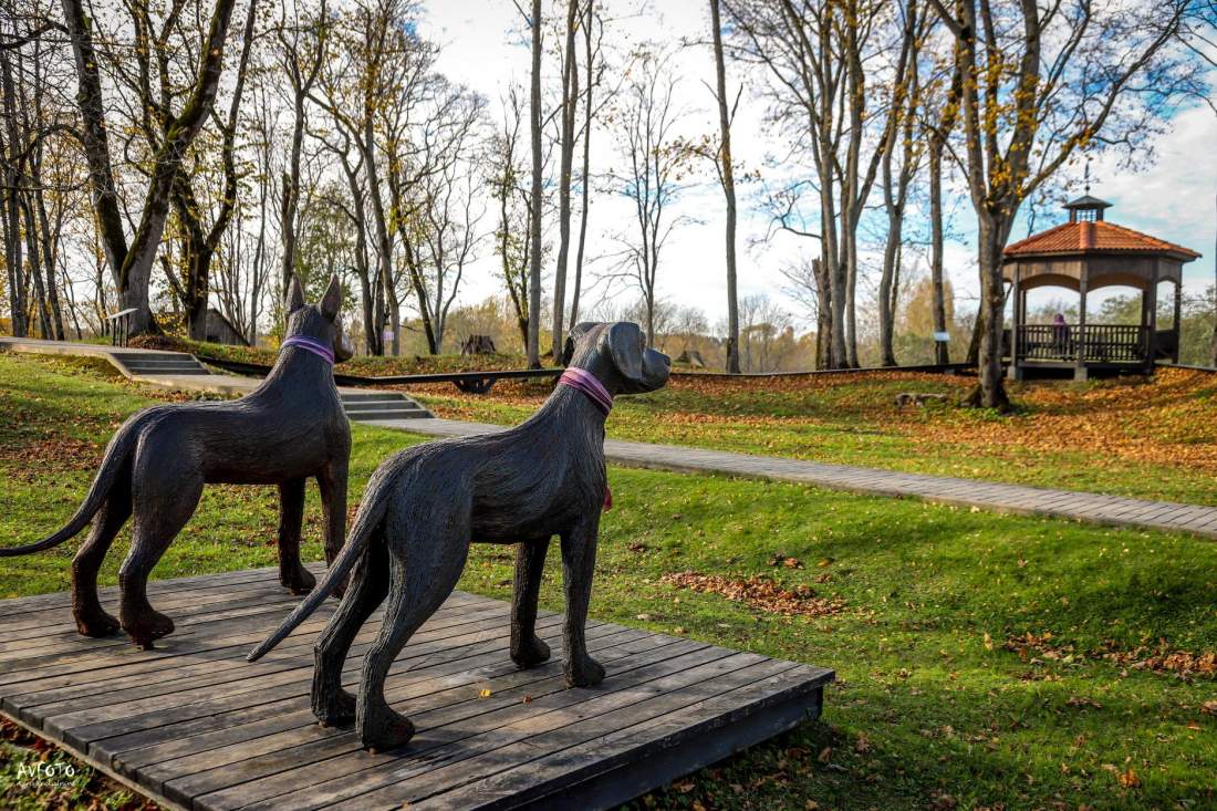 Teritorijā var apskatīt skulptūru “Ērgļu sargsuņi” (mākslinieks Ivars Mailītis) – kādreizējo Ērgļu viduslaiku pils saimnieku Tīzenhauzenu dzimtas dārgumu sargātāji. Leģenda vēsta, ka dārgumi joprojām atrodas pils pazemē, kur tos sargā divi dzelzī kalti suņi. Ērgļu viduslaiku pils teritorija vēsturiski ir bijusi Ērgļu centrālā vieta. Turīgā Tīzenhauzenu dzimta šajā pilī saimniekoja gandrīz divus gadsimtus.