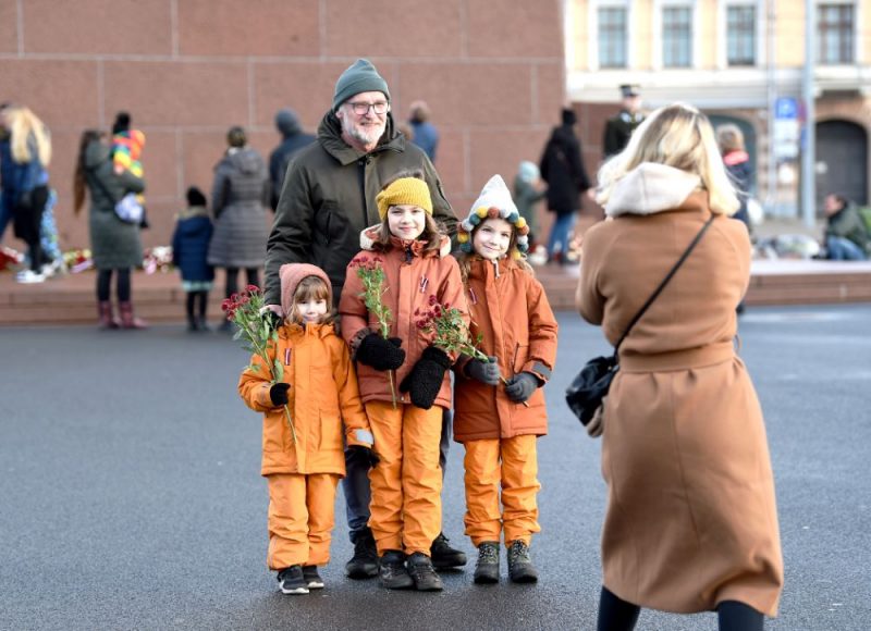 FOTO: Iedzīvotāji un amatpersonas noliek ziedus pie Brīvības pieminekļa Latvijas 103.gadadienā 50
