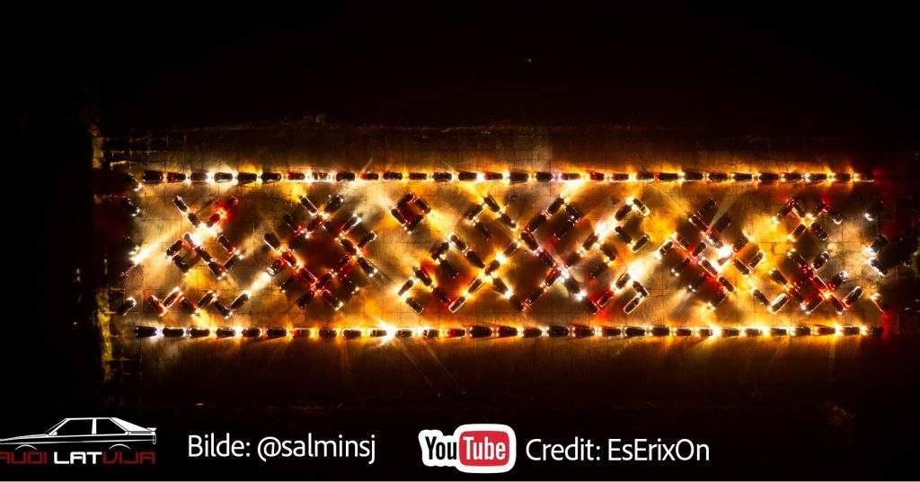 Tuvojoties Latvijas valsts svētku nedēļai, “Audi” fani Latvijā īstenojuši īpašu patriotisku ieceri – Rumbulas lidlauka teritorijā ar aptuveni 200 “Audi” automašīnām izveidota iespaidīga kontūra, kurā attēlota daļa no Lielvārdes jostas, ko izgaismoja automašīnu lukturi.