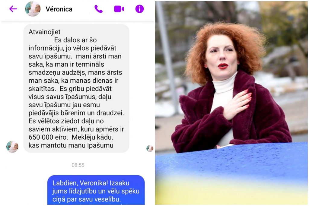 Ziņu it kā raksta kāda sieviete vārdā Veronika, kurai ir “termināls smadzeņu audzējs”. Tā kā viņas dienas esot skaitītas, viņa vēlas piedāvāt sava īpašuma daļas 650 000 vērtībā. Kā viņa apgalvo vēstulē, viņa meklē kādu, kurš varētu mantot viņas īpašumu.