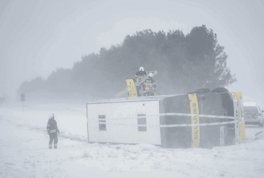 Pēc “Ecolines” sniegtajām ziņām, negadījumu izraisījis spēcīgais vējš un apledojušais ceļš.