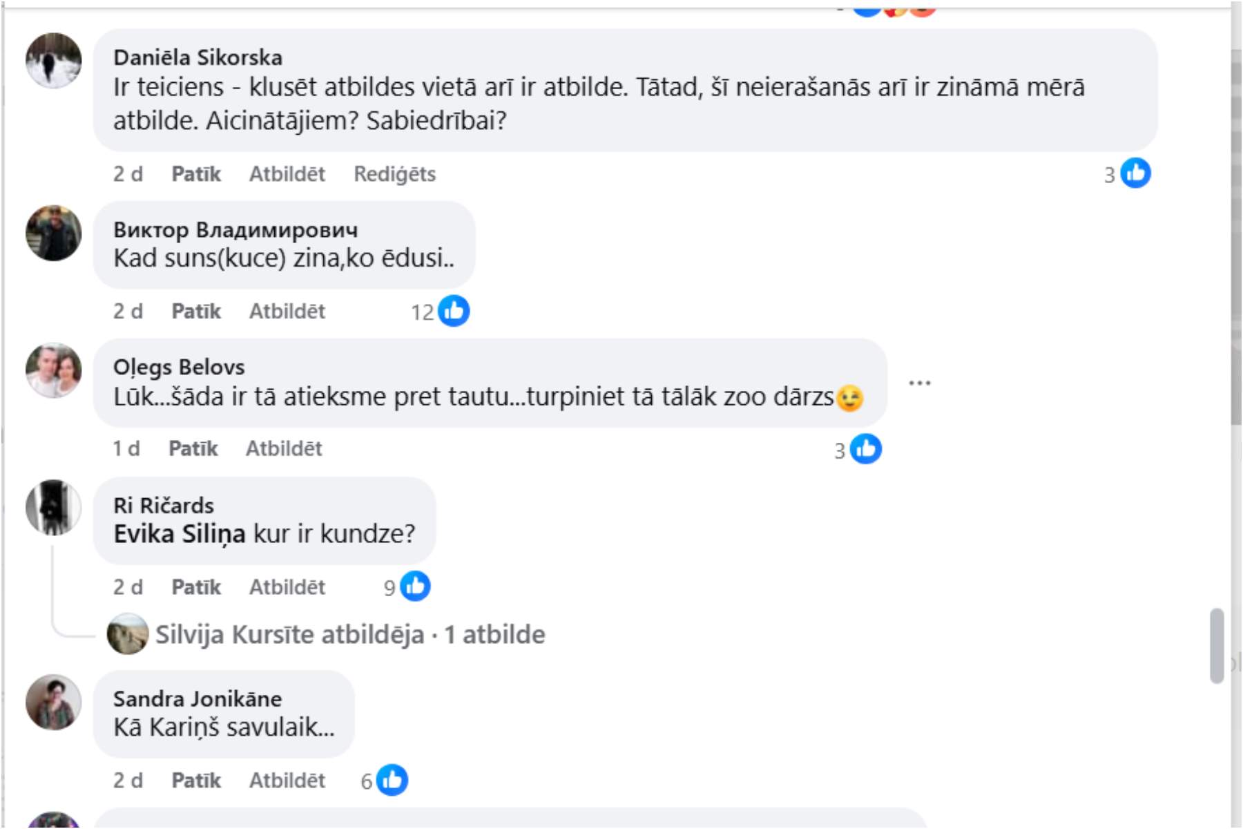 Jo vairāk soctīklotājus uzvilka fakts, ka Evika Siliņa pavisam nesen laipni, plaši un gari sevi prezentēja STV Pirmā! raidījumā “Slavenības bez filtra – viņa runāja ne tikai par politiku, bet arī par to, ka savienot premjeres amatu ar mammas lomu. Lūk, komentāru izlase – viens no tiem viņas vērienu raidījumā raksturoja kā “madāma izpildījās kā cariene”.