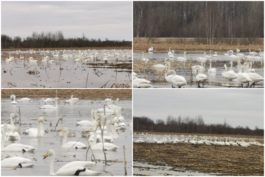 Aizkraukles novadā, netālu no Kokneses, baltie, cēlie putni ir atraduši ļoti ērtu apmešanās vietu – applūdušu lauku, kurā pērn bijušas sasētas kukurūzas, vēsta vietējie iedzīvotāji.