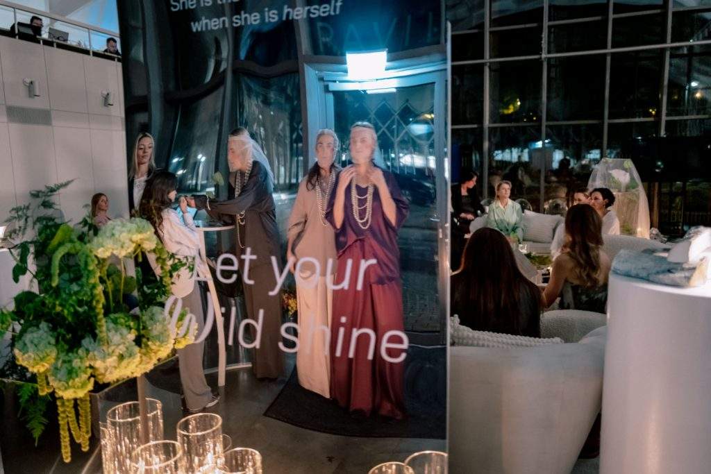 Viesus sagaidīja meitenes plīvura maskās – katra savā tēlā, radot pirmo sajūtu par noslēpumu, rituālu un sievišķīgu klātbūtni, bet patiesībā simbolizējot sabiedrībā uzliktās maksas, kuras ikdienā nēsājam.