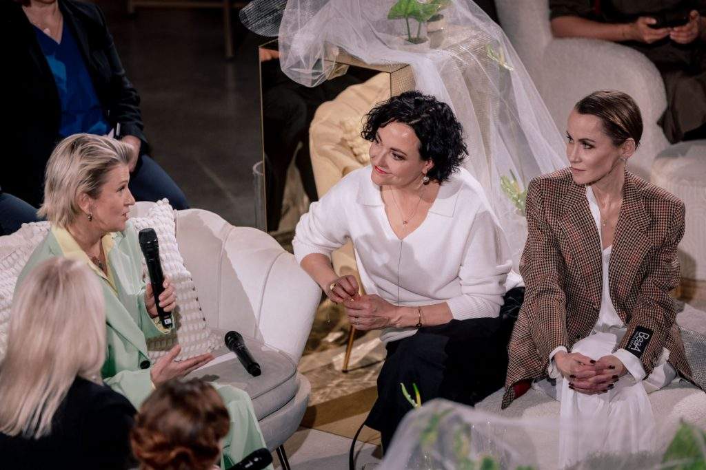 Vakara turpinājumā norisinājās sarunas, kurās piedalījās Baiba Broka, Maija Doveika, Rēzija Kalniņa, Una Ulme un Indra Salceviča, apspriežot sievietes iekšējo pasauli, spēku un trauslumu, Sarunas ievadīja radio un TV radošā personība Kristaps Tālbergs.