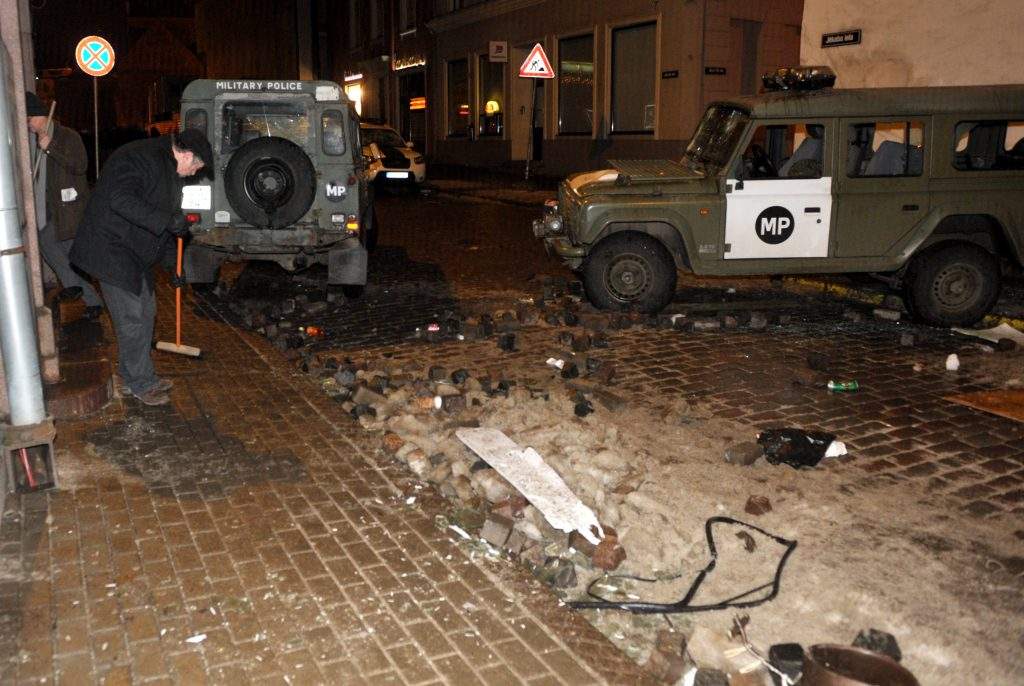 * “Valsts nekustamo īpašumu” valdījumā esošajiem īpašumiem (izsista vitrīna tabakas veikalam, muzikālajam restorānam, Finanšu ministrijai izsisti 30 logi, tajā skaitā Valsts kasei – 13 dubultlogi, VID – 7 logi) – 12 475 lati (17 750 eiro);