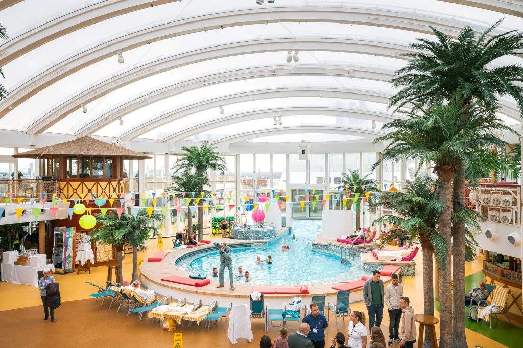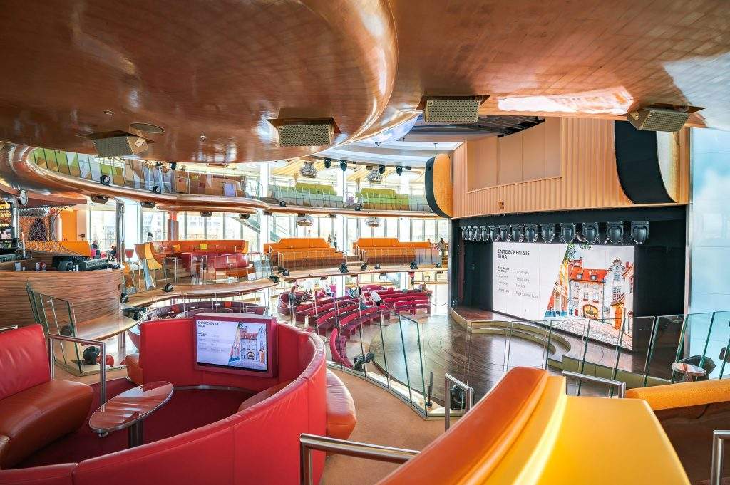 AIDAprima ir lielākais no AIDA Cruises kuģiem, kas līdz šim apmeklējis Rīgas ostu. Tam ir 18 klāji, uz tā izvietoti 12 restorāni, 18 bāri un klubi, 6 baseini, SPA zona un iespaidīgs sauļošanās klājs – 4 484 m² platībā. Pludmales kluba baseina zona ir pārklāta ar caurspīdīgu UV caurlaidīgu membrānas kupolu, kas ļauj pasažieriem baudīt pludmales atpūtu arī sliktos laika apstākļos. Naktī uz pludmales kluba kupola tiek projicētas zvaigznes un demonstrēti lāzeršovi.