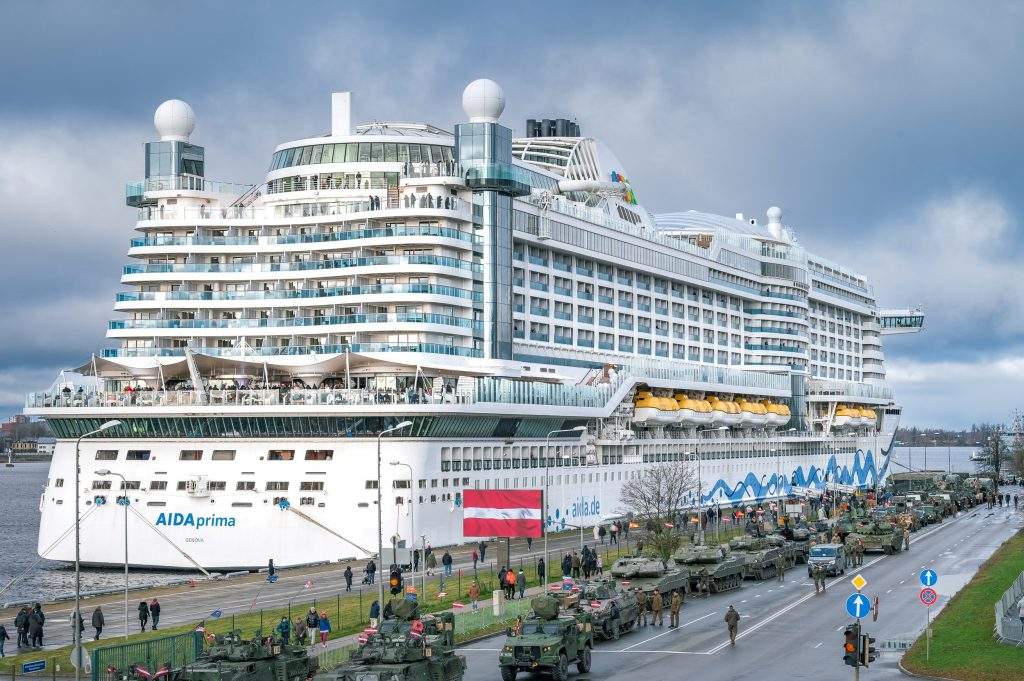 Valsts svētku laikā uz divām dienām Rīgas ostā bija piestājis iespaidīgs viesis -vācu kompānijas AIDA Cruises 300 metrus garais kruīza laineris AIDAprima. Uz Rīgu tas atveda 3467 pasažierus un 988 lielu apkalpes komandu, kuri, kā atzina kuģa kapteinis, ar prieku izmantoja iespēju doties galvaspilsētas ielās, lai izbaudītu īpašo valsts svētku atmosfēru un kultūras programmu, kā arī, pat nenokāpjot no kuģa klāja, ar interesi sekoja līdzi arī militārās parādes sagatavošanās darbiem krastmalā.