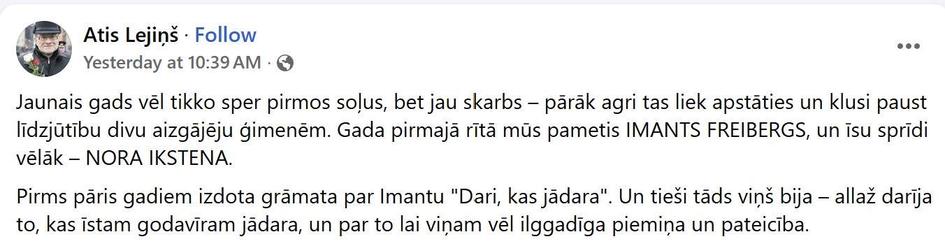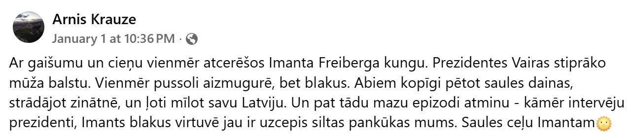 FOTO. “Lūk, šādas personības maina likteņus!” Sērojošā sieva un daudzi sabiedrībā zināmi cilvēki atvadās no Imanta Freiberga 0