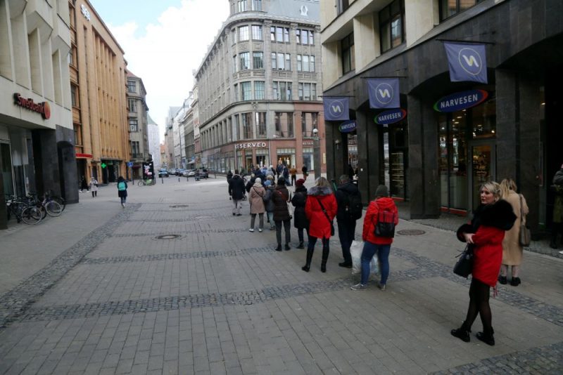 FOTO. Mazie veikali beidzot vaļā! Rīdzinieki šodien stundām ilgi stāv uz ielas garās rindās 58