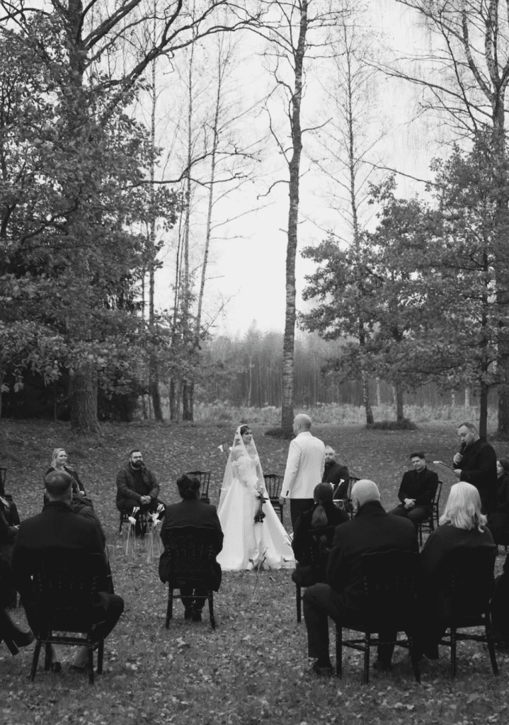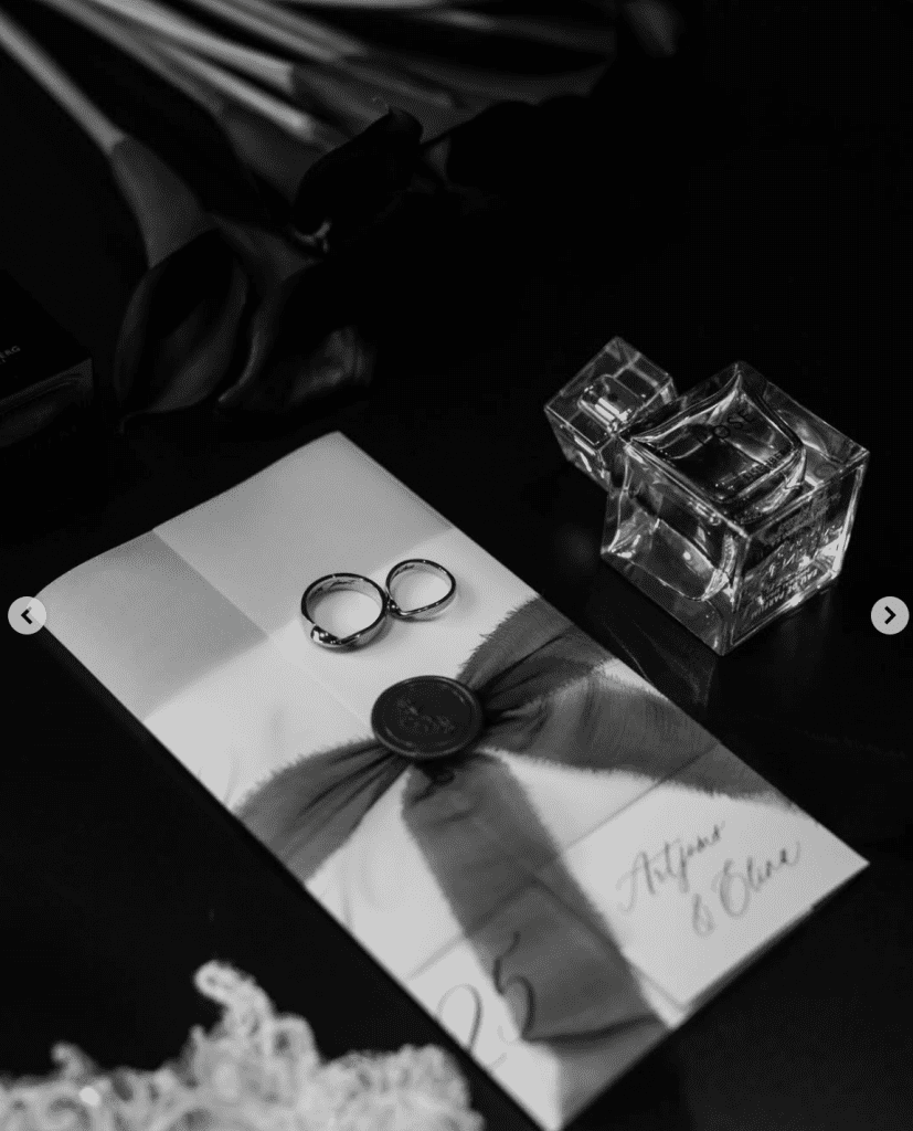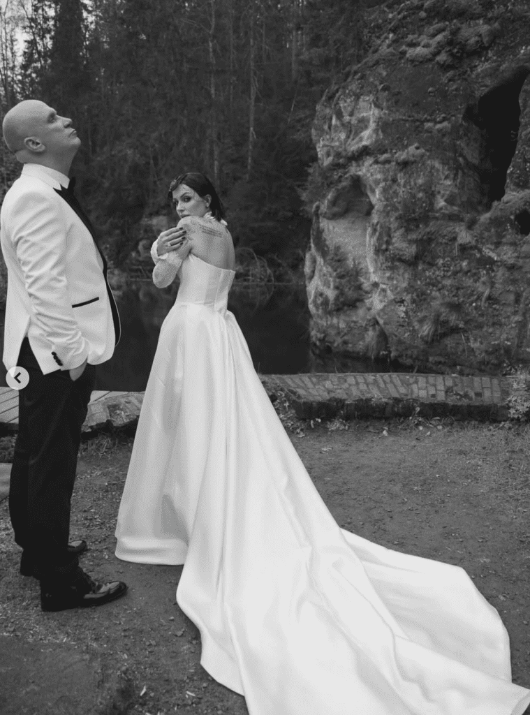 FOTO. Melnbaltais šarms, noslēpumainība un grācija: Gluzunovi publicē pirmās kāzu bildes 0