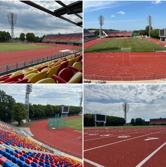 Stadiona rekonstruētā centrālā vieglatlētikas laukumā, ievērojot t.sk. WA (Starptautiskā Vieglatlētikas federācija) un LVS (Latvijas Vieglatlētikas savienība) prasības un nosacījumus, ir labiekārtots skrejceļu sektors, tāllēkšanas / trīssoļlēkšanas sektors, kārtslēkšanas sektors, lodes grūšanas sektors, diska un vesera mešanas sektors, šķēpmešanas sektors, augstlēkšanas sektors un ūdens šķēršļu bedres sektors.