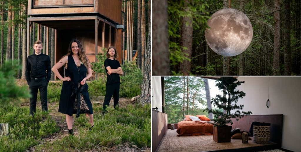 FOTO. Mūžīgais mēness koku galotnēs, gulta zem zvaigžņotas debess: Gundega Skudriņa ar komandu radījuši unikālas naktsmājas meža vidū 37