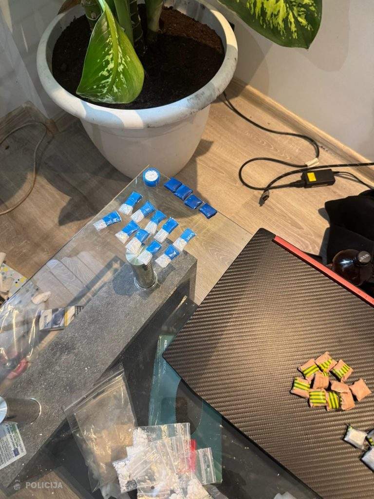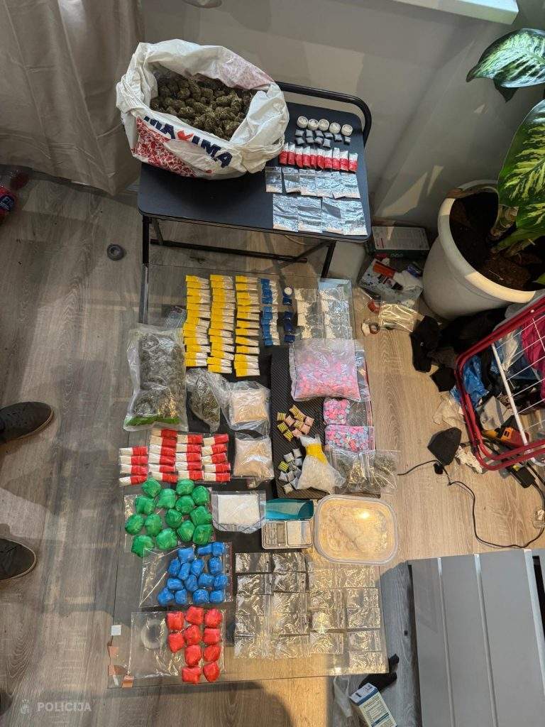 Pēc personas aizturēšanas tika veikta kratīšana viņa dzīvesvietā Rīgā, atrodot plašu klāstu narkotiku – gandrīz visas šobrīd populārākās narkotiskās vielas. Kopumā no vīrieša atsavināts 1 kg marihuānas, 1,5 kg amfetamīna, 1200 tablešu MDMA, 400 g alfa-PVP, 300 g MDMA kristālu, 210 g sintētiskā heroīna (šora), 100 g ketamīna un 70 g kokaīna.