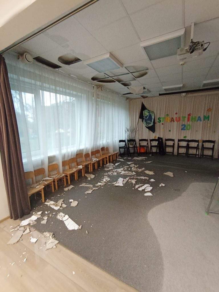 Kādu laiku bērni muzicēs citās telpās. Arī vadītājas darbs būs apgrūtināts. Izglītības iestāde pateikusies visiem darbiniekiem par palīdzību telpu sakopšanā, slapjo paklāju pārvietošanā, kā arī vecākiem par sapratni!