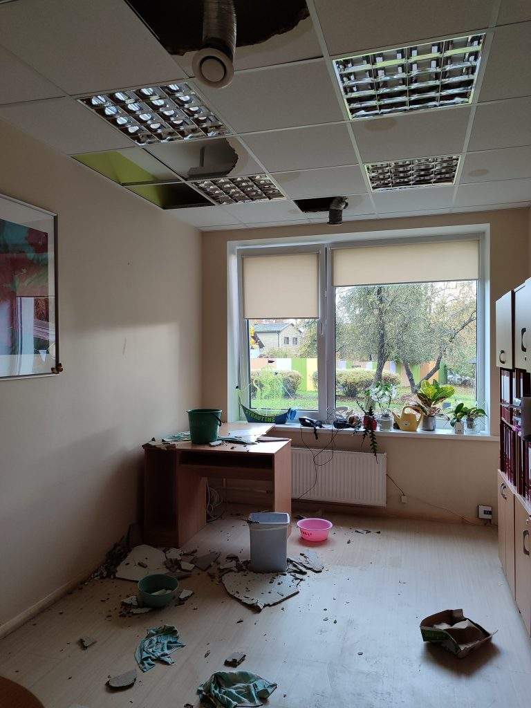 Tur tika lūgts bērnu vecākiem, kuriem ir iespēja, paturēt bērniņus mājās. Pārējie bērni tika pieņemti un izvietoti grupiņās, kuras plūdi nebija skāruši. Ūdens noplūdes rezultātā cietusi Lapu ielas ēkas aktu zāle un vadītājas kabinets, vēstīts publikācijā.