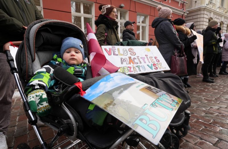 FOTO. Pie Saeimas piketēt pret mazo lauku skolu slēgšanu ieradušās arī ģimenes ar maziem bērniem 57