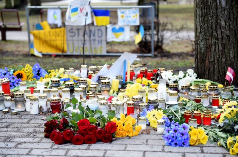 FOTO. Pie Ukrainas vēstniecības cilvēki noliek ziedus un svecītes; pie Krievijas – turpina piketēt 56