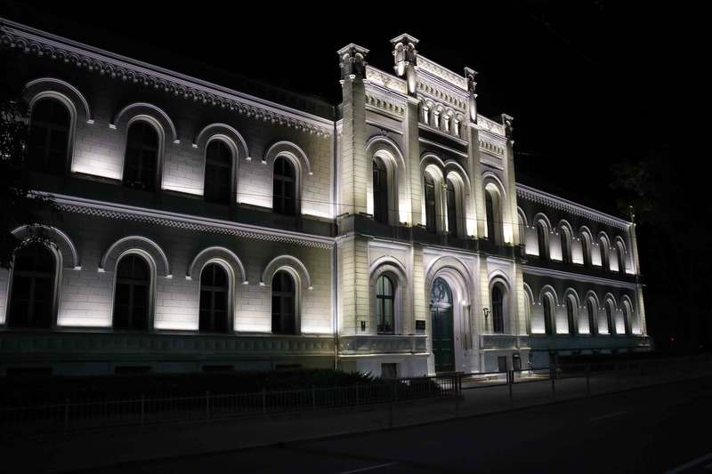 FOTO: Pirmo reizi izgaismo Rīgas Valsts 1. ģimnāzijas vēsturiskās ēkas fasādi 0