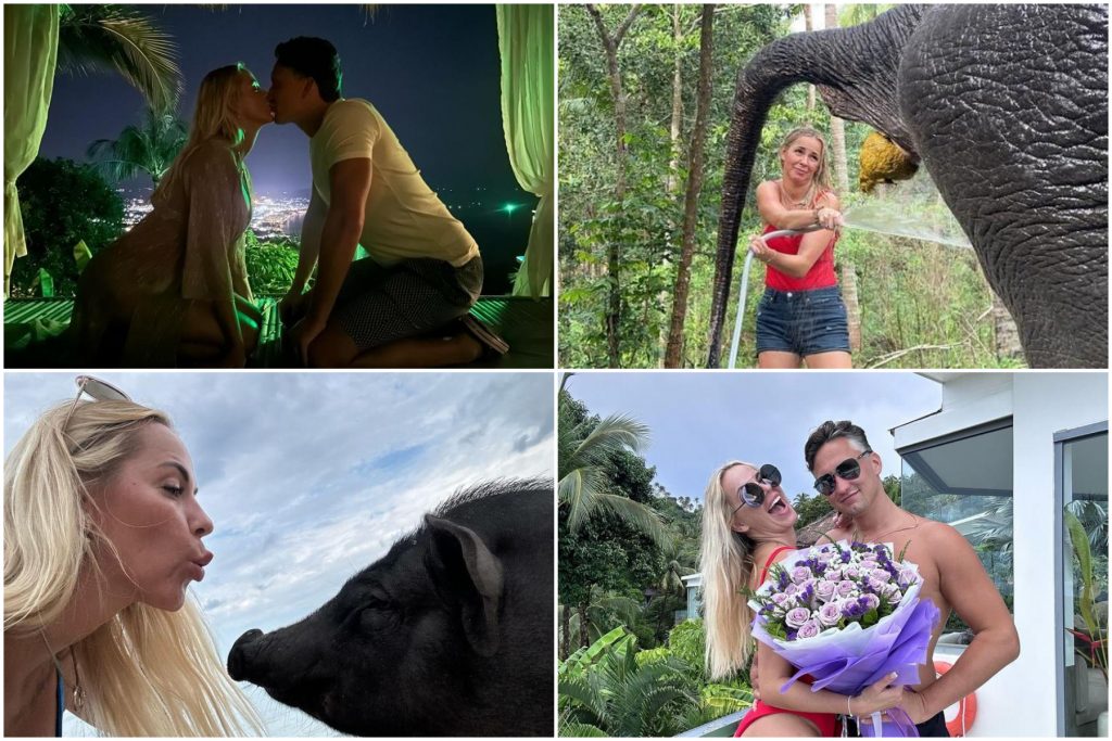 Arī savā “Instagram” kontā Katrīne dalās ar piedzīvojumiem. Tur redzams, kā viņi kopā ar vīru satikās ar ziloņiem un saņēma bučas ne tikai viens no otra, bet arī no šiem eksotiskajiem dzīvniekiem. Pāris dienas vēlāk abi devās uz cūku salu.