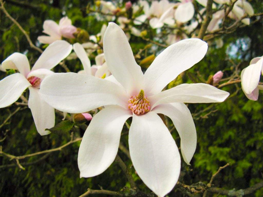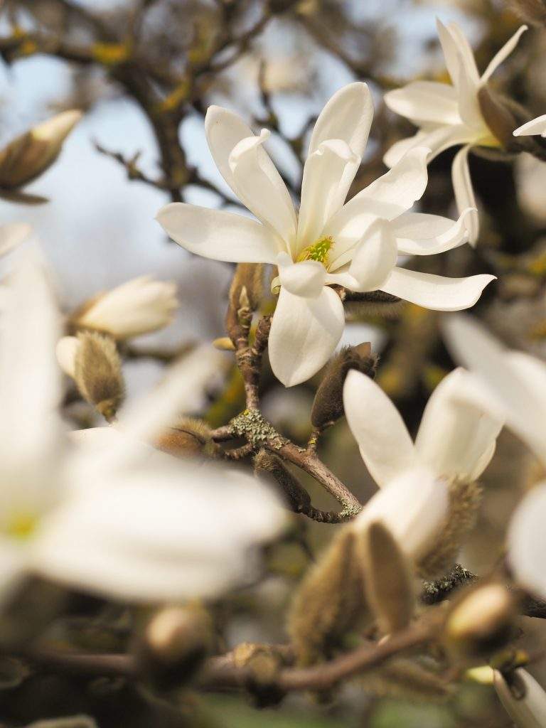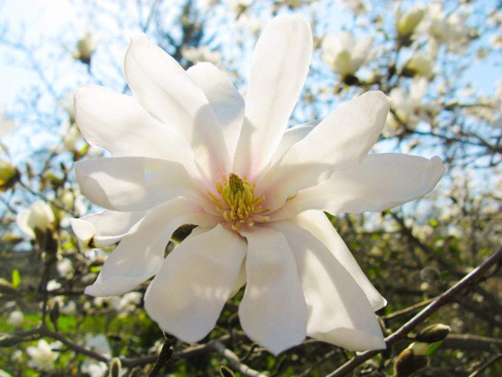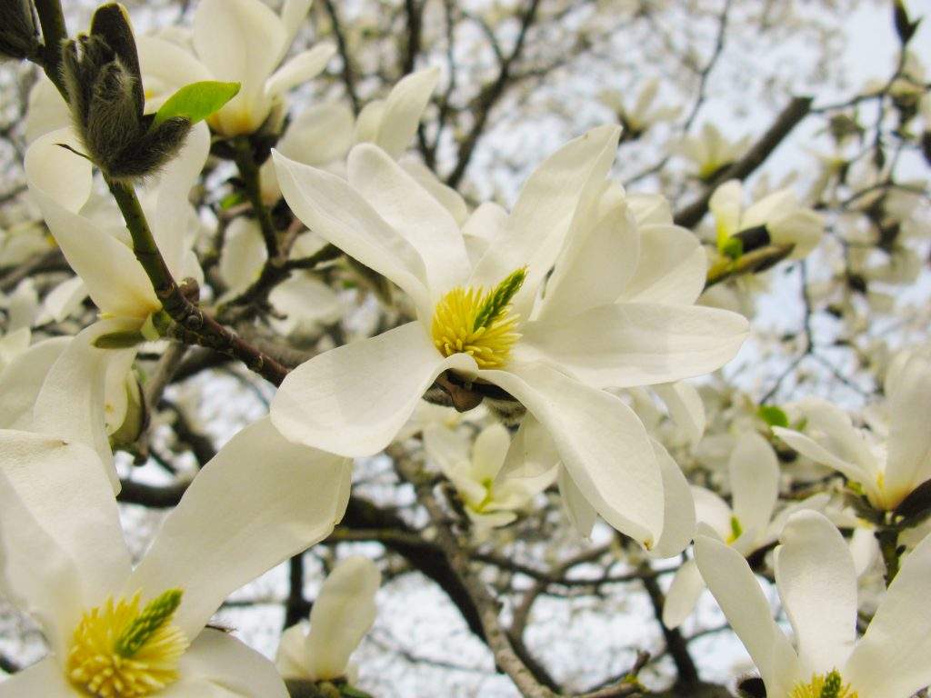 Kā pirmās dārza centrālajā daļā uzplaukušas Lebnera magnolijas, kurām pakāpeniski pievienojas zvaigžņu magnolijas un ziemeļu Kobus magnolijas. To ziedēšana iezīmē sezonas sākumu, taču tuvākajās nedēļās, iestājoties siltākam laikam, strauji uzplauks arvien jaunas šķirnes, iekrāsojot dārzu aizvien košāku.