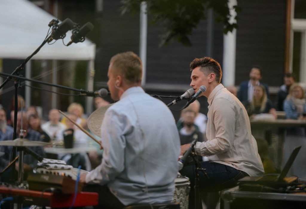 FOTO. Svētki turpinās! Ar krāšņu mūziku Kalnciema kvartālā viesus pulcē populāra latviešu grupa 7