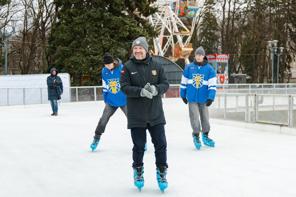 Pasākuma laikā Rīgas Hokeja skolas audzēkņi un treneris Oļegs Sorokins atklāja slidotavu noslidojot pirmo apli.