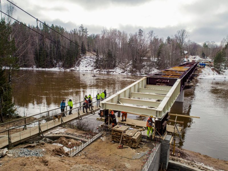 FOTO: Tiltam pār Gauju pie Rāmniekiem uzbīdītas jaunas laiduma sijas. Kāpēc šī metode ir īpaša? 2