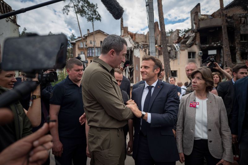 FOTO. “Ukrainai ir jāpretojas un jāuzvar!” Makrons Irpiņā cildina ukraiņu varonību 0