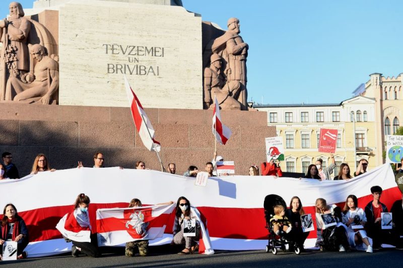 Pirmdienas vakarā vairāk nekā 100 cilvēki Rīgā piedalījās akcijā, godinot politieslodzītos un protestu laikā Baltkrievijā cietušos, novēroja aģentūra LETA.