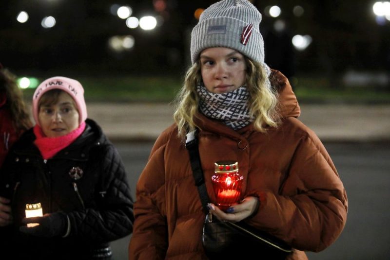 Lāčplēša dienas vakarā ap plkst.20 pie Rīgas pils mūra bija nolikts liels daudzums iedegtu svecīšu, tomēr cilvēki tuvumā nedrūzmējās, novēroja aģentūra LETA.