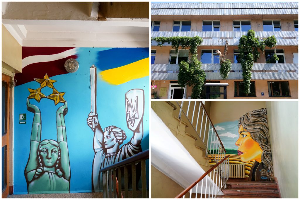 FOTOGALERIJA. Saulespuķes uz sienām! Rīgā atklāta Ukrainas bēgļiem pielāgota ēka Ūnijas ielā 45