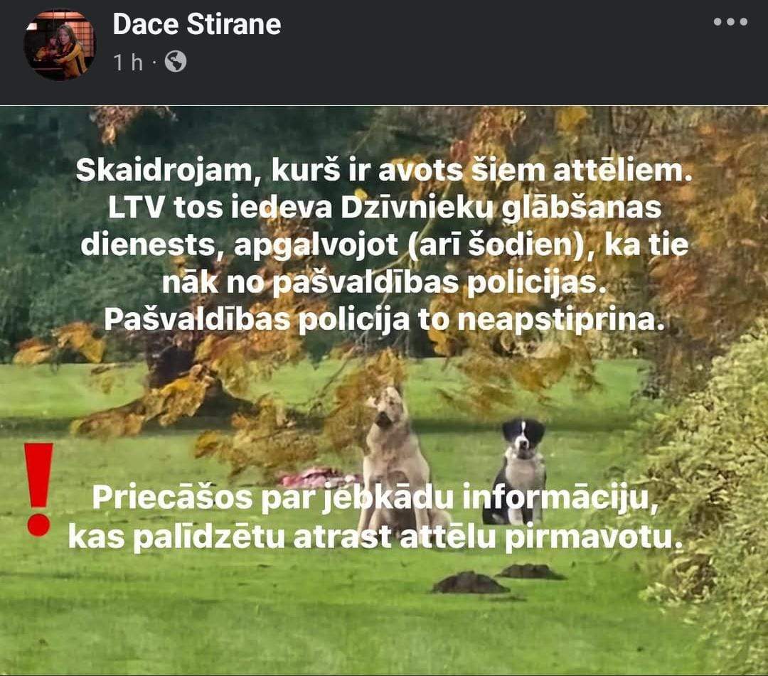 Ar sociālo mediju palīdzību tiek meklēts publicētā attēla pirmavots: “Skaidrojam, kurš ir avots šiem attēliem. LTV tos iedeva Dzīvnieku glābšanas dienests, apgalvojot, ka tie nāk no pašvaldības policijas. Pašvaldības policija to neapstiprina.”
