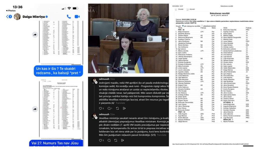 “Saeimā balso “uz dullo”? Diabēta pacienti nikni, publisko pat privātas sarakstes ar Mieriņu