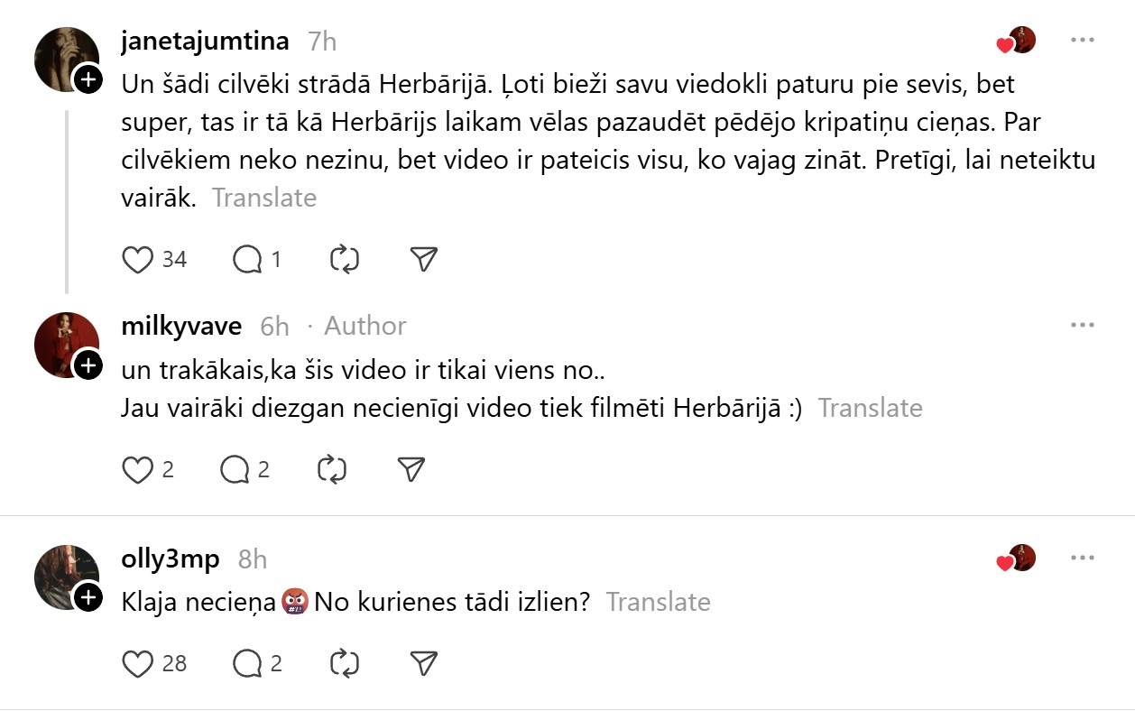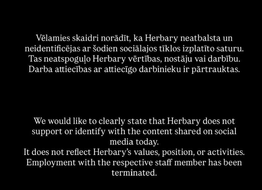 Vēlāk arī Doloresas darbavieta – “Herbary” – publiskoja ierakstu, norādot, ka norobežojas no šīs darbinieces aktivitātēm.