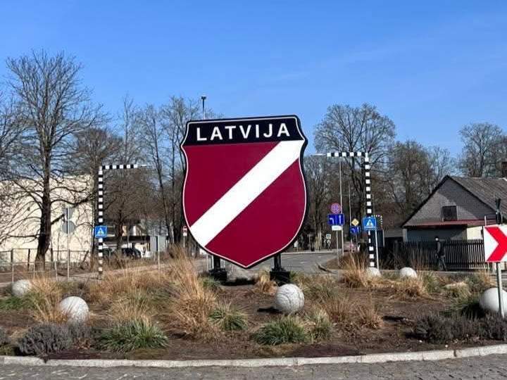 Ogres rotācijas aplī dienu pirms 16. marta uzstādīts liels sarkanbaltsarkans vairodziņš ar uzrakstu “Latvija”, vēsta portāls ogrenet.lv.