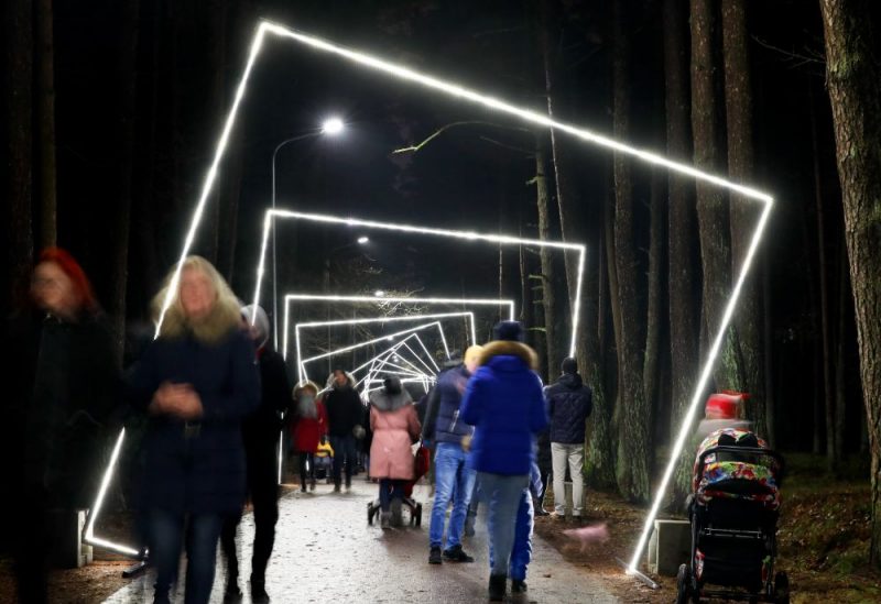 Vēlāk svētku noformējuma izgaismojums Biķernieku meža alejas un Anniņmuižas parka pastaigu takās atjaunots.