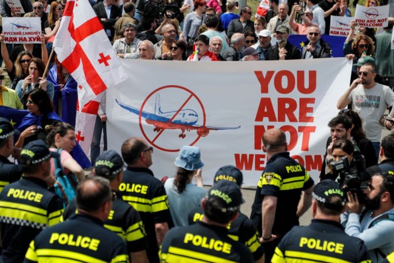 Izklīdinot plašo protestu Tbilisi lidostā, starp Gruziju un Krieviju atsākas tiešie avioreisi 23