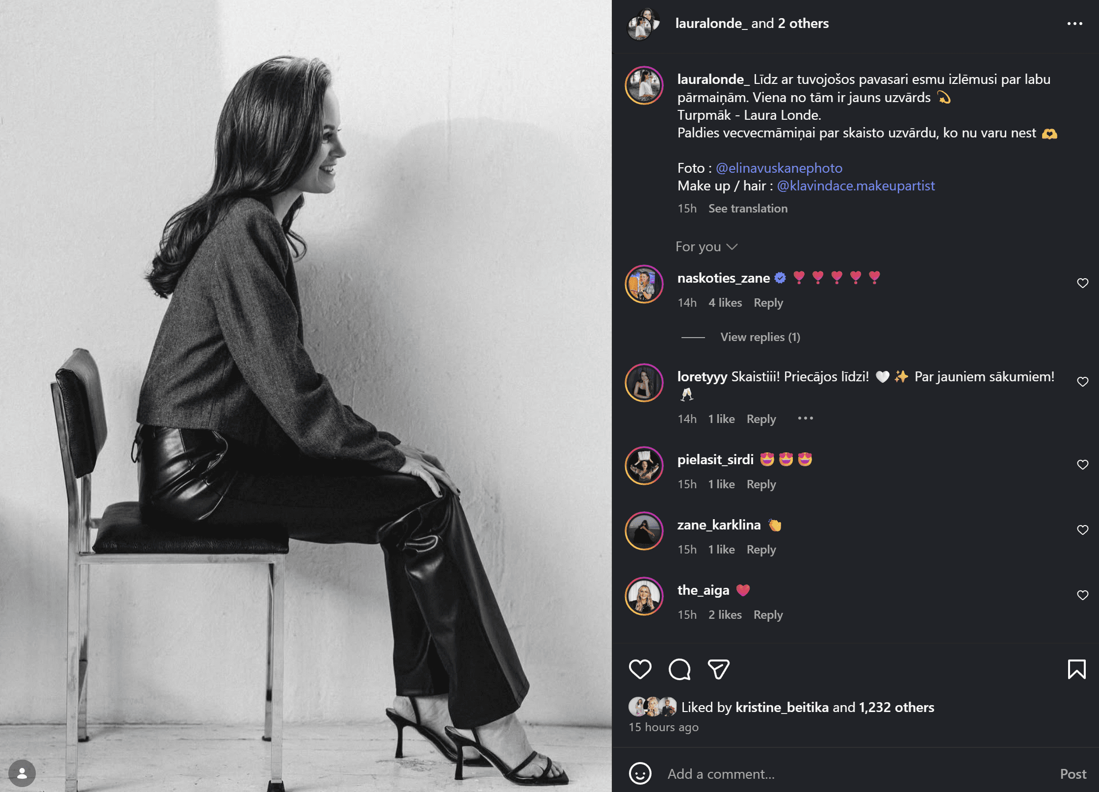 “Līdz ar tuvojošos pavasari esmu izlēmusi par labu pārmaiņām. Viena no tām ir jauns uzvārds. Turpmāk – Laura Londe,” vietnē “Instagram” paziņojusi Laura Grēviņa, kura nu dēvējama par Lauru Londi. Viņa ir pateicīga vecvecmāmiņai par skaisto uzvārdu, kuru viņa tagad var nest.