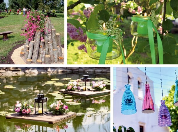 Ja līdzās svētku norises vietai ir dīķis, ļoti romantiski izskatīsies uz nelieliem plostiem izvietoti lukturīši ar ziedu kompozīcijām.