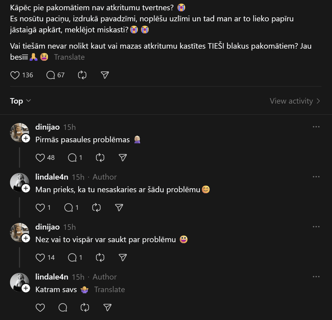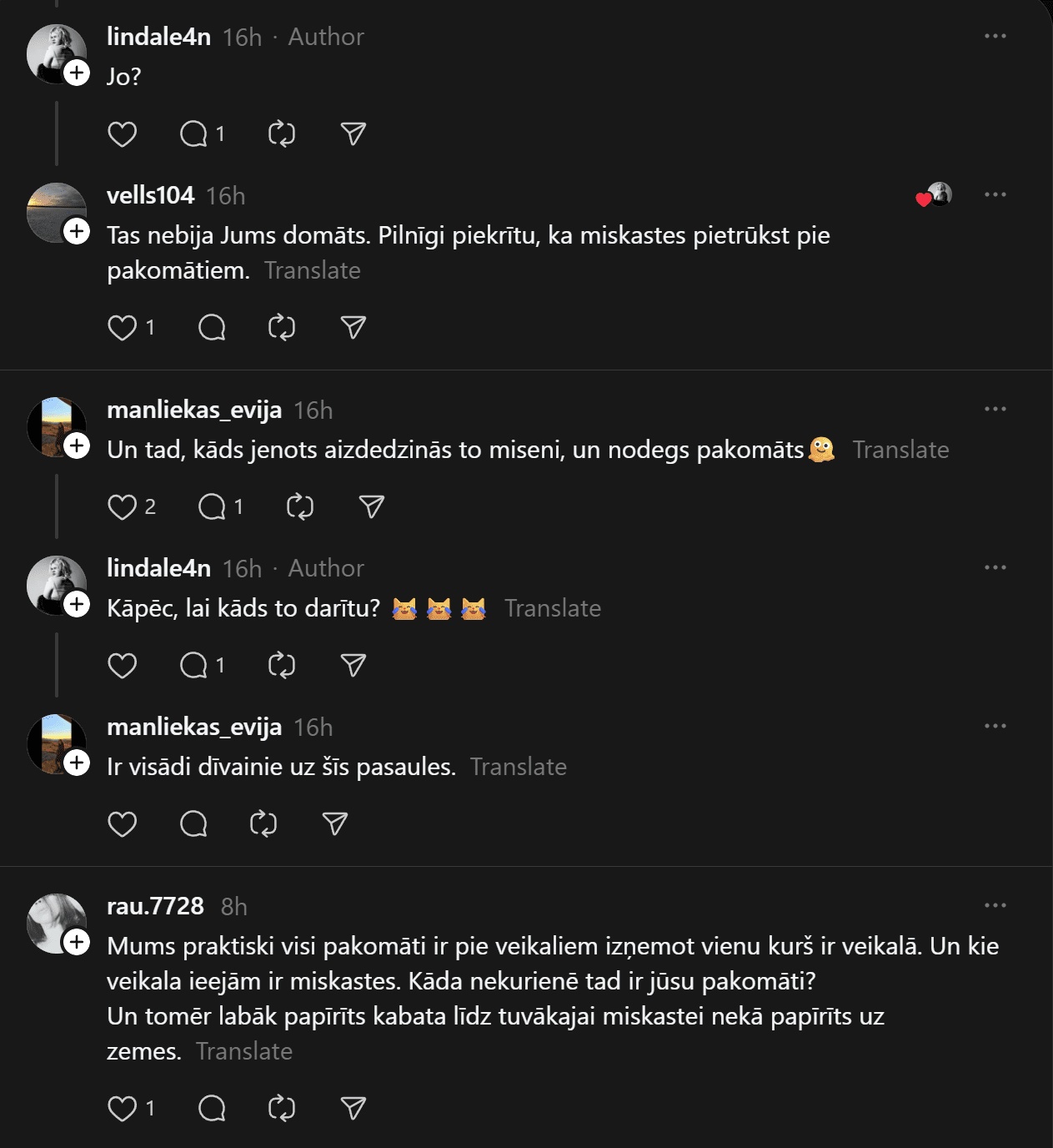 Diskusijā izskan arī plašāks skatījums uz sabiedrības paradumiem. “Man likās, ka tas būtu ērti, bet, palasot komentārus, sapratu – cilvēki ir gatavi uzreiz visu sadedzināt,” ironiski secina kāda lietotāja. Cits piebilst: “Ir visādi dīvainie uz šīs pasaules.”