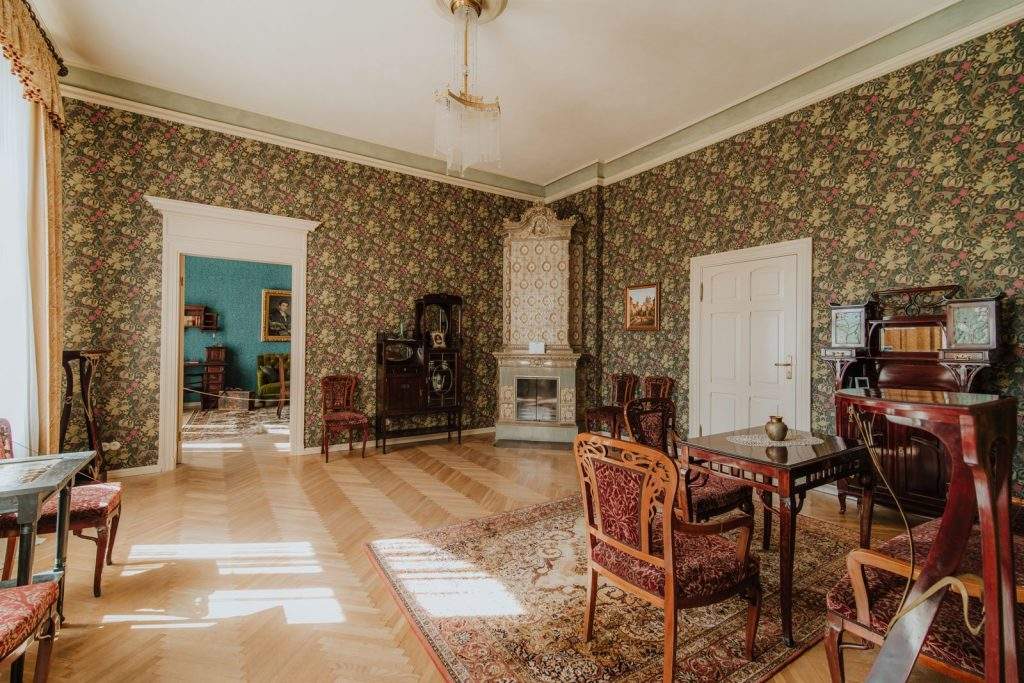 Savukārt citos pils salonos ieturētais jūgendstils apmeklētāju aizved uz 20.gadsimta sākuma pasauli ar tā eleganci, mākslu, ikdienas dzīves skaistumu un nesteidzīgo plūdumu. Ieva Sīpola stāsta, ka izsmeļošāka ieskata gūšanai pils vēstures un jūgendstila interjera ekspozīcijās var gūt doties vēsturiskā ekskursijā pils dāmas pavadībā.
