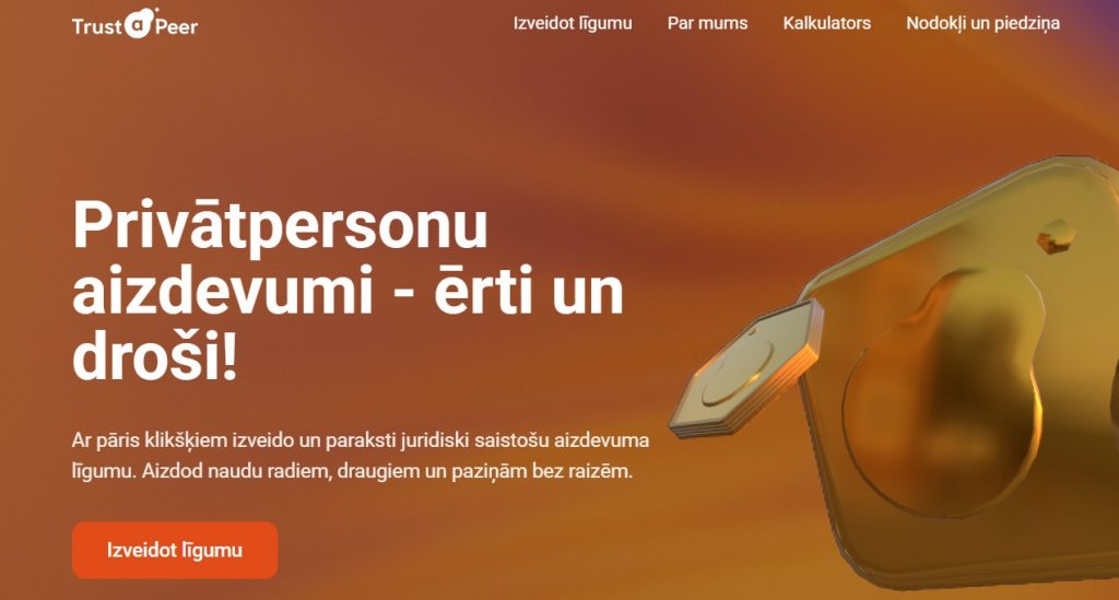 Latvijā darbu sāk Trust-a-Peer – digitāla platforma, kas ļauj privātpersonām pāris minūtēs tiešsaistē izveidot juridiski saistošu aizdevuma līgumu. Skaidri noteikumi, pārskatāmi maksājumu grafiki un iespēja izvairīties no pārpratumiem draugu vai radinieku starpā.