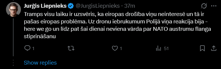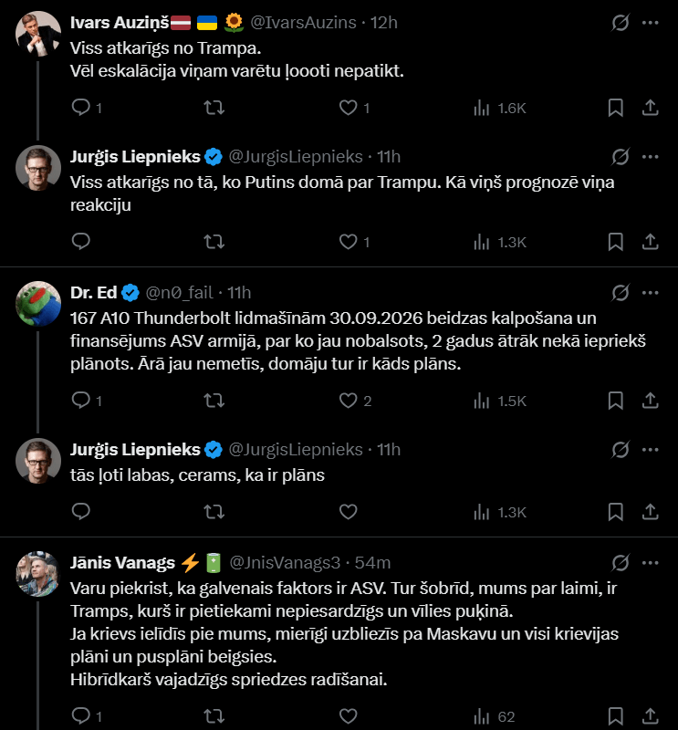 ASV prezidenta Donalda Trampa paziņojums, kurā viņš Krieviju nodēvēja par “papīra tīģeri”, ir balstīts uz Amerikas izlūkdienestu datiem, kas liecina, ka Krievija strauji virzās pretim ekonomiskam sabrukumam un militārai sakāvei, raksta laikraksts “New York Post”. Arī vietējie eksperti, protams, cenšas izprast diktatora iespējamos rīcības plānus. Šoreiz savu viedokli X izteicis politisko procesu apskatnieks Jurģis Liepnieks.