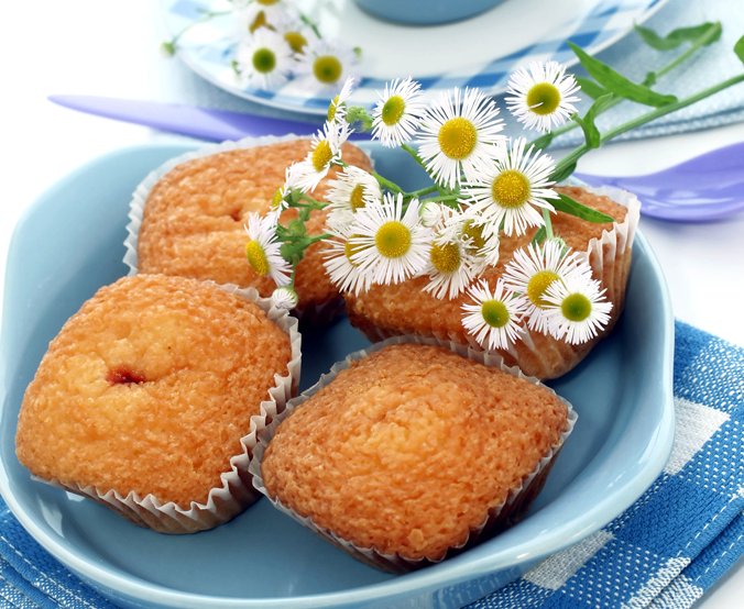 Olu ar cukuru saputo, pielej eļļu. Miltos iejauc cepamo pulveri, kanēli, sāli. Pievieno saputotajai olai, samaisa. Pieber kumelītes un rīvēto kabaci. Ietauko kēksa veidnes, katrā liek gatavo masu, aizpildot 3/4 no formiņas augstuma. Cep 15–20 minūtes 180 °C.
