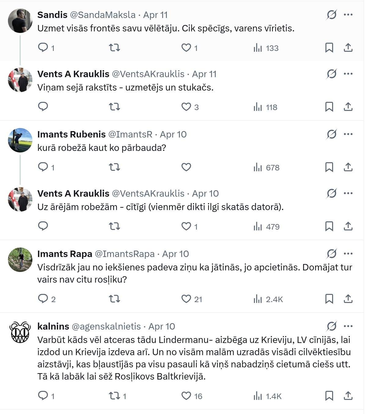 Kāds vēl norāda, ka izskatās, ka Rosļikovs Baltkrievijā ieceļojis ne no Latvijas: “Izskatās, ka Baltkrievijā ieceļojis nešķērsojot LV robežu. Tādu aizliegumu redz tikai LV.”