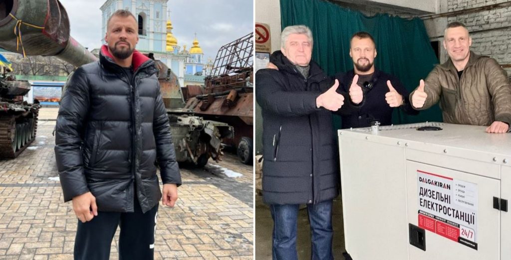 Citā fotogrāfijā viņš redzams kopā ar Kijivas mēru Kļičko: “Uzdāvināju elektroģenerātoru Kijivas bērnu sporta skolai.”