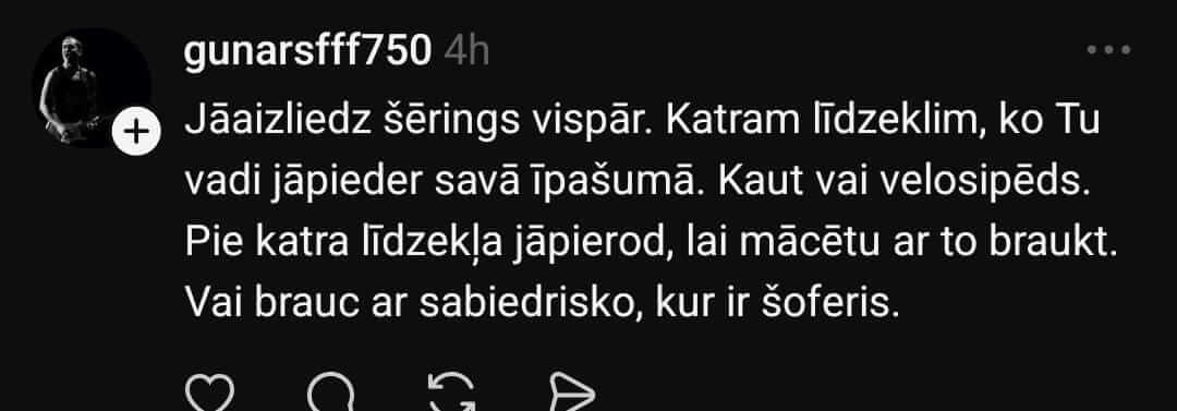 Renārs norāda, ka jau atkal tiek vainots uzņēmums, pie bezatbildīgu vecāku un neaudzināto bērnu rīcības. “Tie elektriskie braucamie neviens nav ātrāks par velosipēdu – tad vienīgais pārmetums uzņēmumam- nav izkontrolēts nevis vecums, bet velo vadītāja apliecības esamība…. Satiksmes negadījums notika neievērojot satiksmes noteikumus. Ik vienam tiek mācīts, ja dzelzceļa pārbrauktuve ir slēgta, tad ir jāgaida…. Kur šeit ir atbildīgs uzņēmums?”